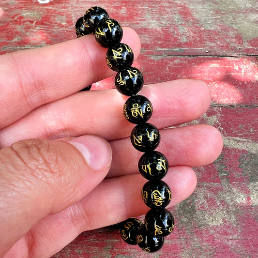 Pulsera de Piedra ÓNIX | OM MANI PADME HUM | Elasticada