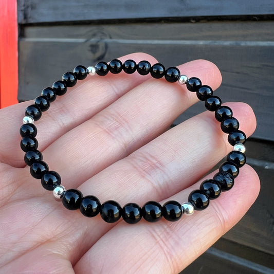 PULSERA ELASTICADA "PROTECCIÓN Y ENRAIZAMIENTO | Turmalina negra | Plata 925 (Copia)