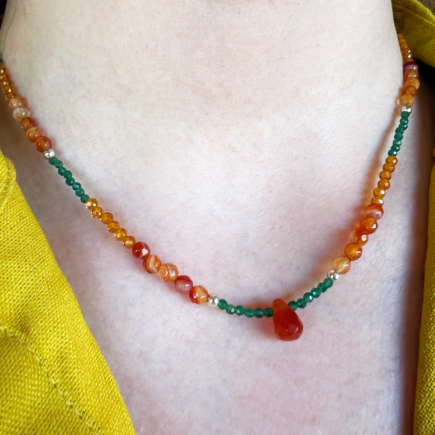 Collar "Prosperidad y Abundancia" | Cornalina, Citrino y Aventurina Verde | Plata 925