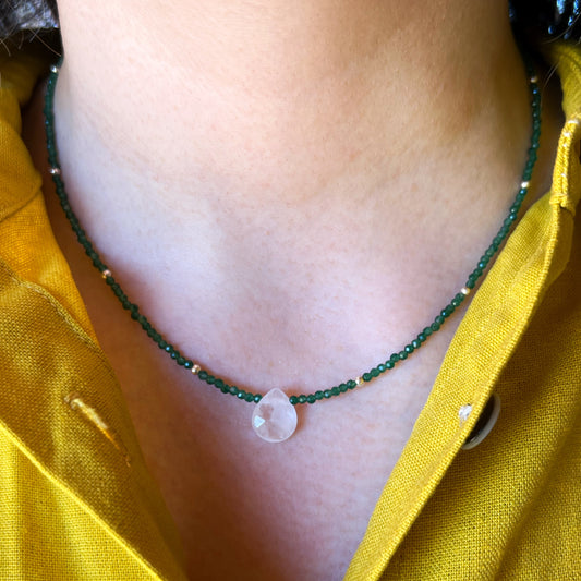 Collar "Buena Suerte y Oportunidades" | Aventurina Verde y Cuarzo Cristal | Plata 925
