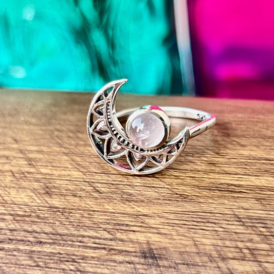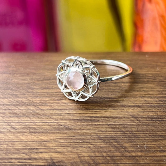 Anillo Cuarzo Rosa CHANDRA | "Amor propio y Sanación emocional" | Plata 925