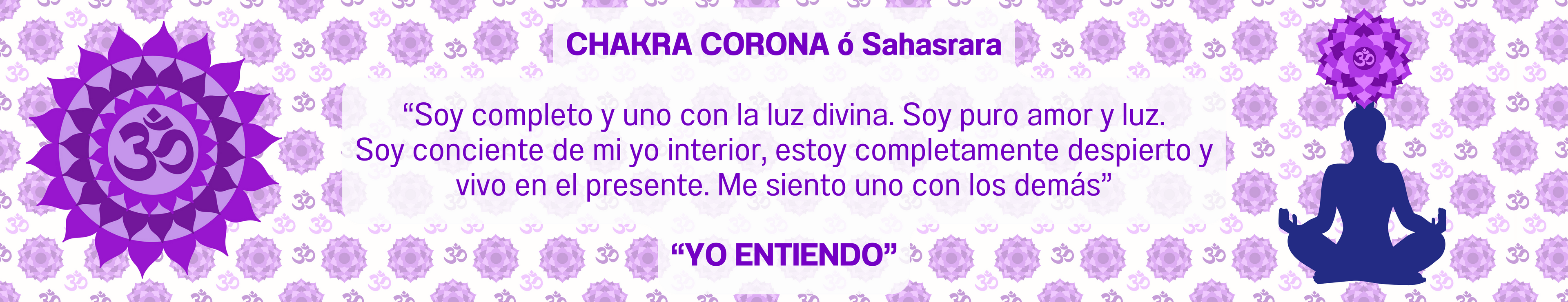 El chakra de la corona es de color violeta o blanco y se encuentra en la parte superior de tu cabeza. Tiene que ver con la conciencia espiritual. Es importante trabajar en los otros seis chakras primero antes que este, ya que la energía aquí es suministrada por los demás. Caundo se activa el chakra de la corona, has encontrado el propósito de tu alma. Te sientes iluminado, sabiendo que todos estamos conectados y que todo es amor. No hay límite para tu felicidad y tienes el control total de tu mente.