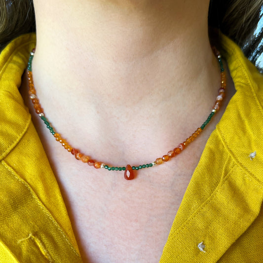 Collar "Prosperidad y Abundancia" | Cornalina, Citrino y Aventurina Verde | Plata 925