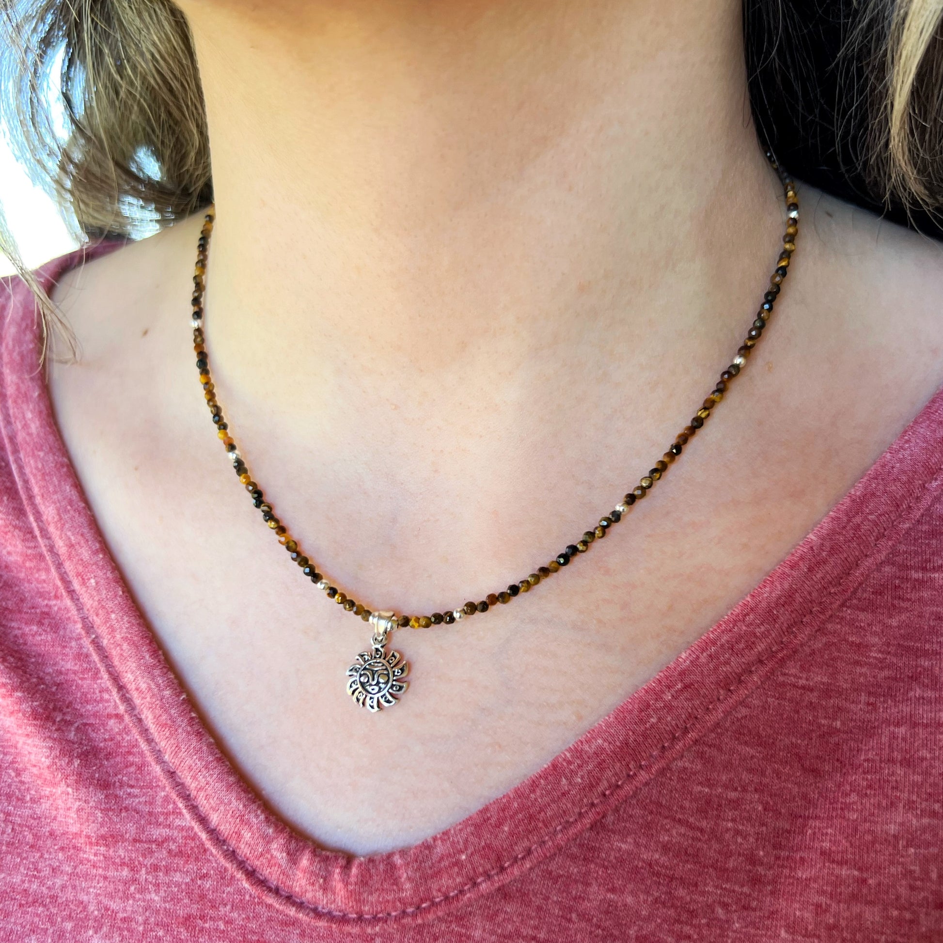 Collar de Ojo de Tigre con Dije de Sol | PROTECCIÓN Y ABUNDANCIA