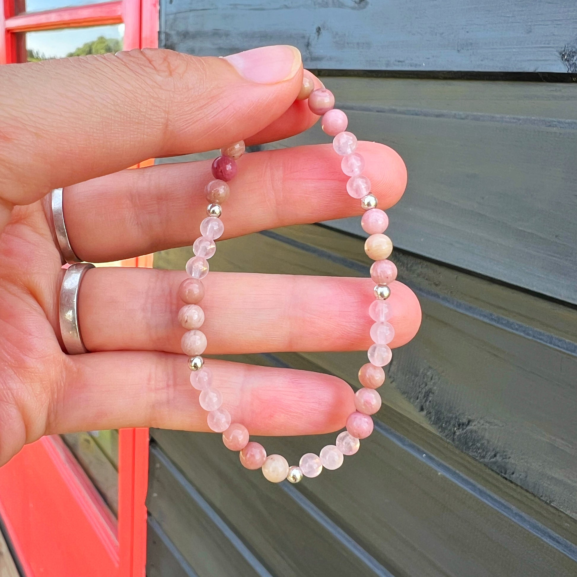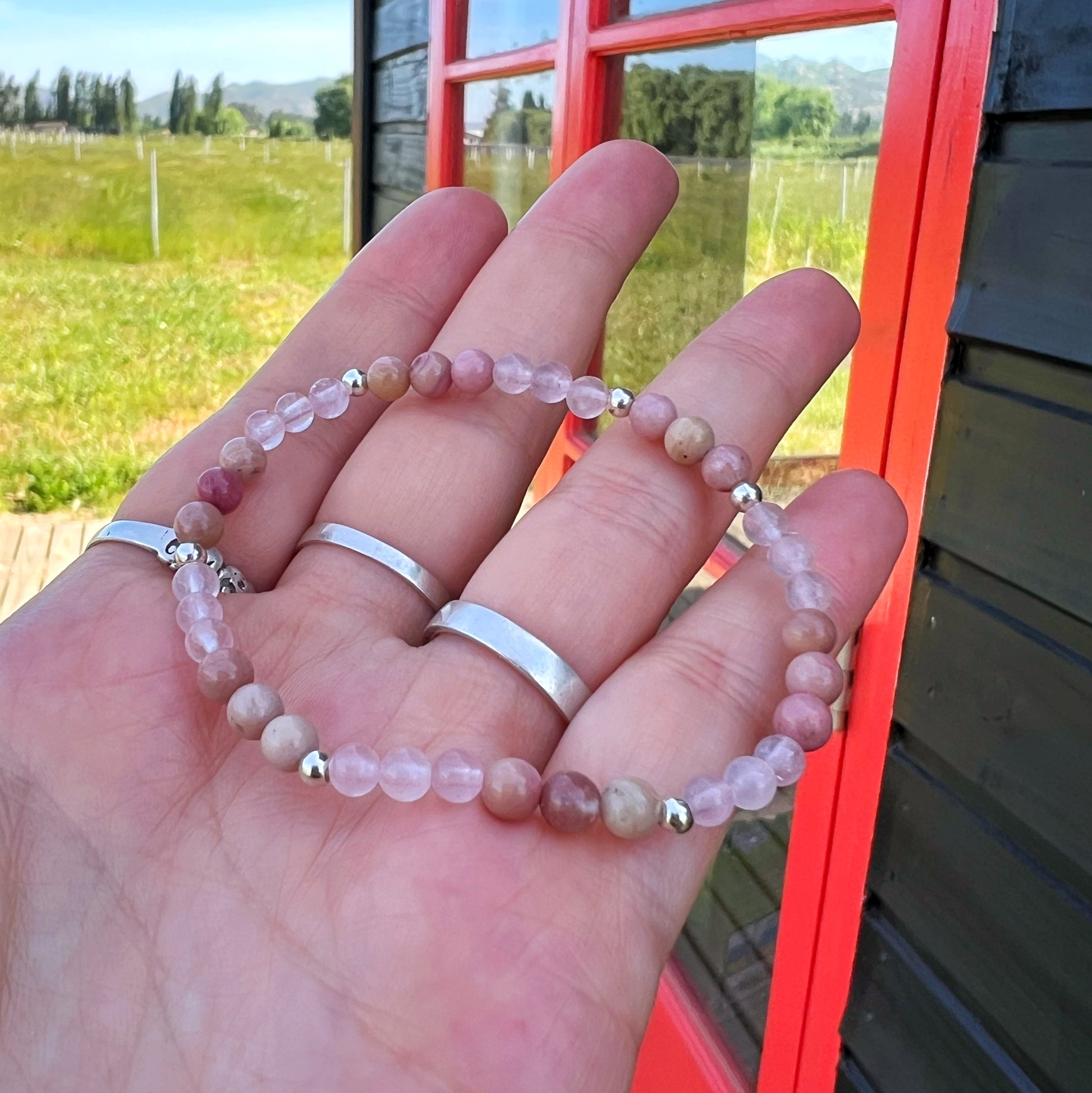 Pulsera Elasticada "Amor propio"| Cuarzo Rosa y Rodocrosita | Plata 925